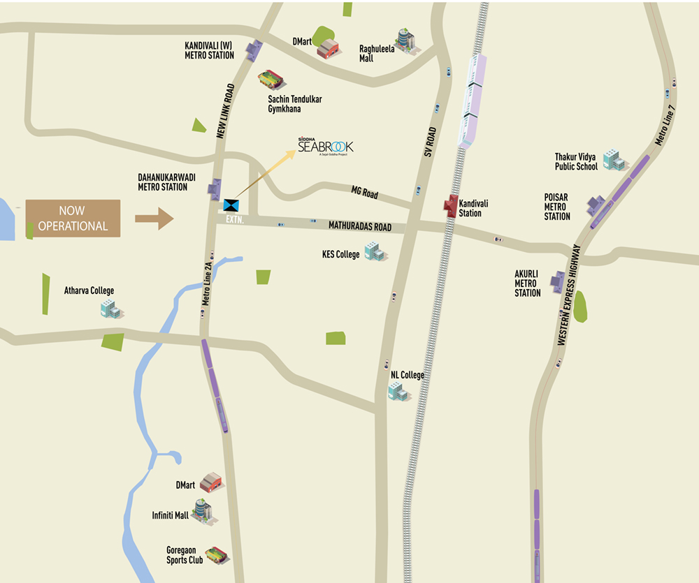 Located in Kandivali (W), Siddha Seabrook offers seamless connectivity with easy access to Western Express Highway, SV Road, Link Road, and Metro Lines 2A & 7. Proximity to railway stations, reputed schools, hospitals, and malls ensures a well-connected and convenient lifestyle, making everyday commuting effortless and leisure moments more enjoyable.